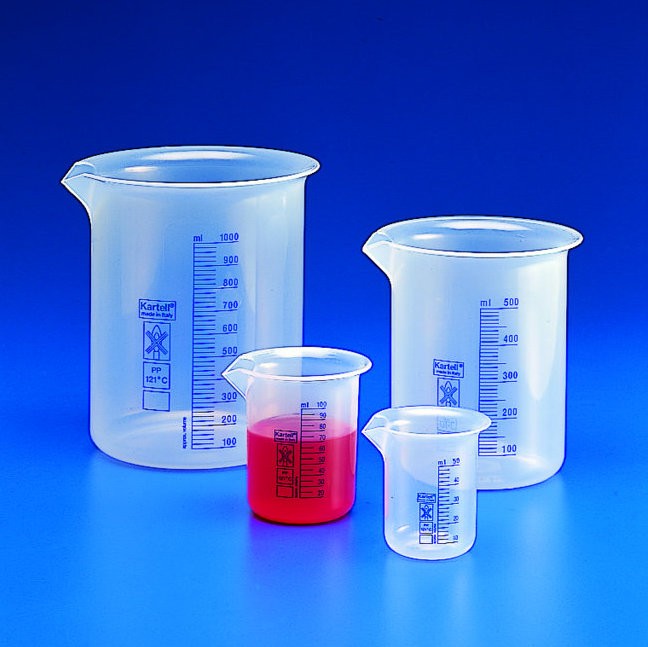SCIENCE Medical Measurement Plastic beaker containing red liquid and Science Beaker Plastic We offer plastic measuring beakers in all sized from 50 ml to 1000 ml. They won’t break, chip or shatter during use and cleaning. Lightweight and easy to handle. 1000 ml beaker made of quality polypropylene plastic, smooth and rounded, more durable than easy. Rely on plastic beakers for a safer alternative to glass, especially in larger sizes. Plastic science. Science Beaker Plastic.