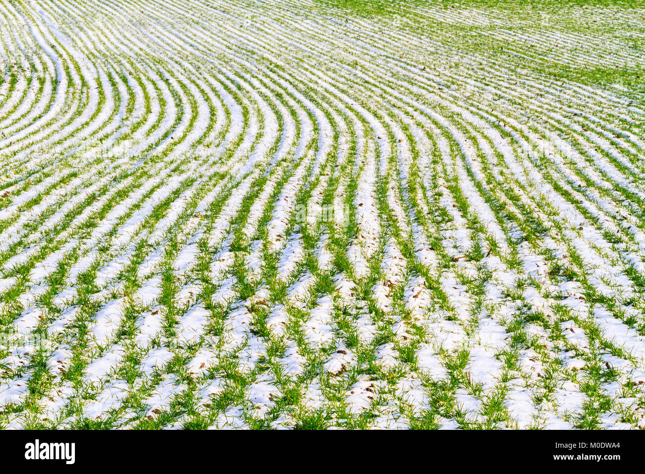 winter wheat planted with rows , growing of grain, selection Stock