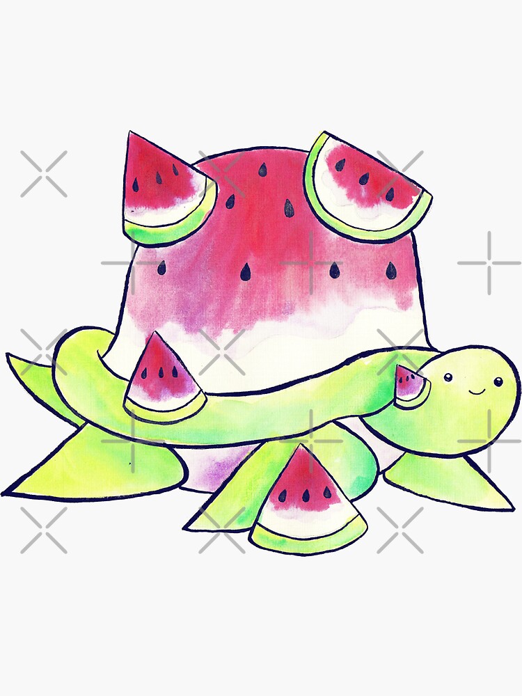 "Watermelon Turtle Watercolor" Sticker for Sale by SaradaBoru Redbubble