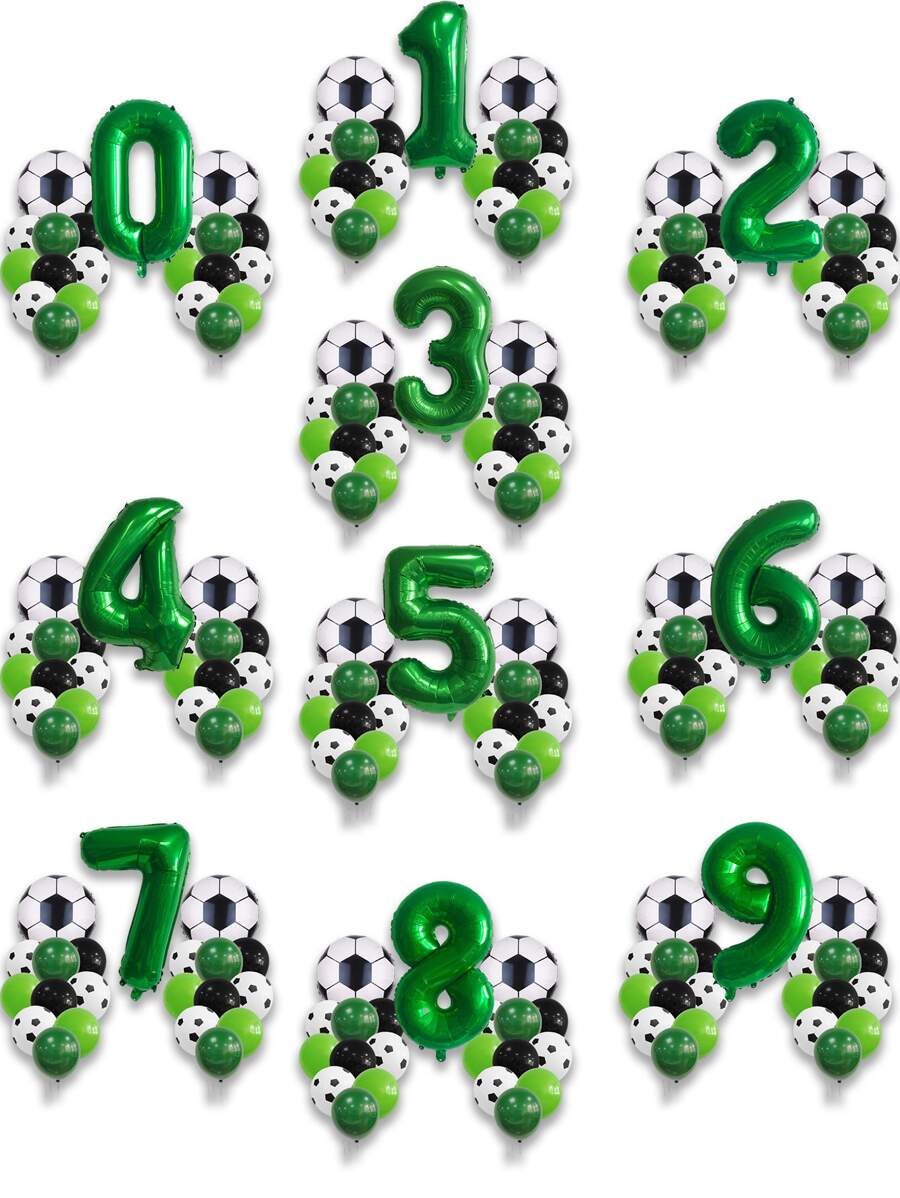 21pcs/Set Green Football Theme Latex Balloons & Number Aluminum Foil