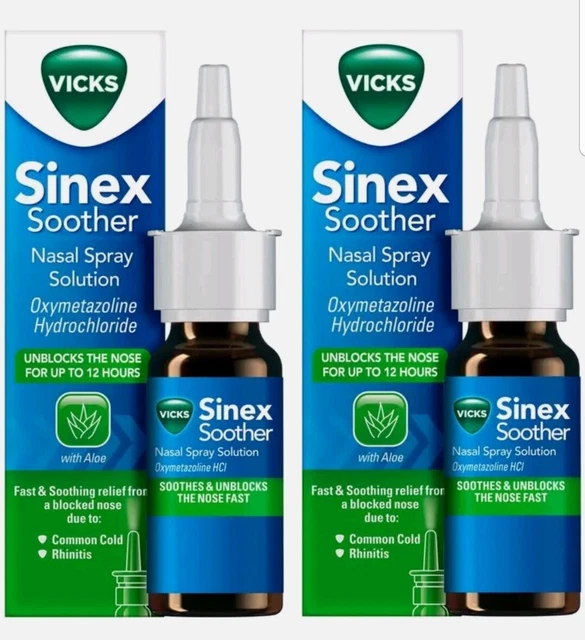 VICKS SINEX SOOTHER Decongestant Nasal Spray Blocked Nose 15ml x 2