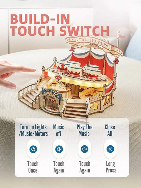 1box 3d Rotating Tea Cup Wooden Jigsaw Puzzle Model With Lights And