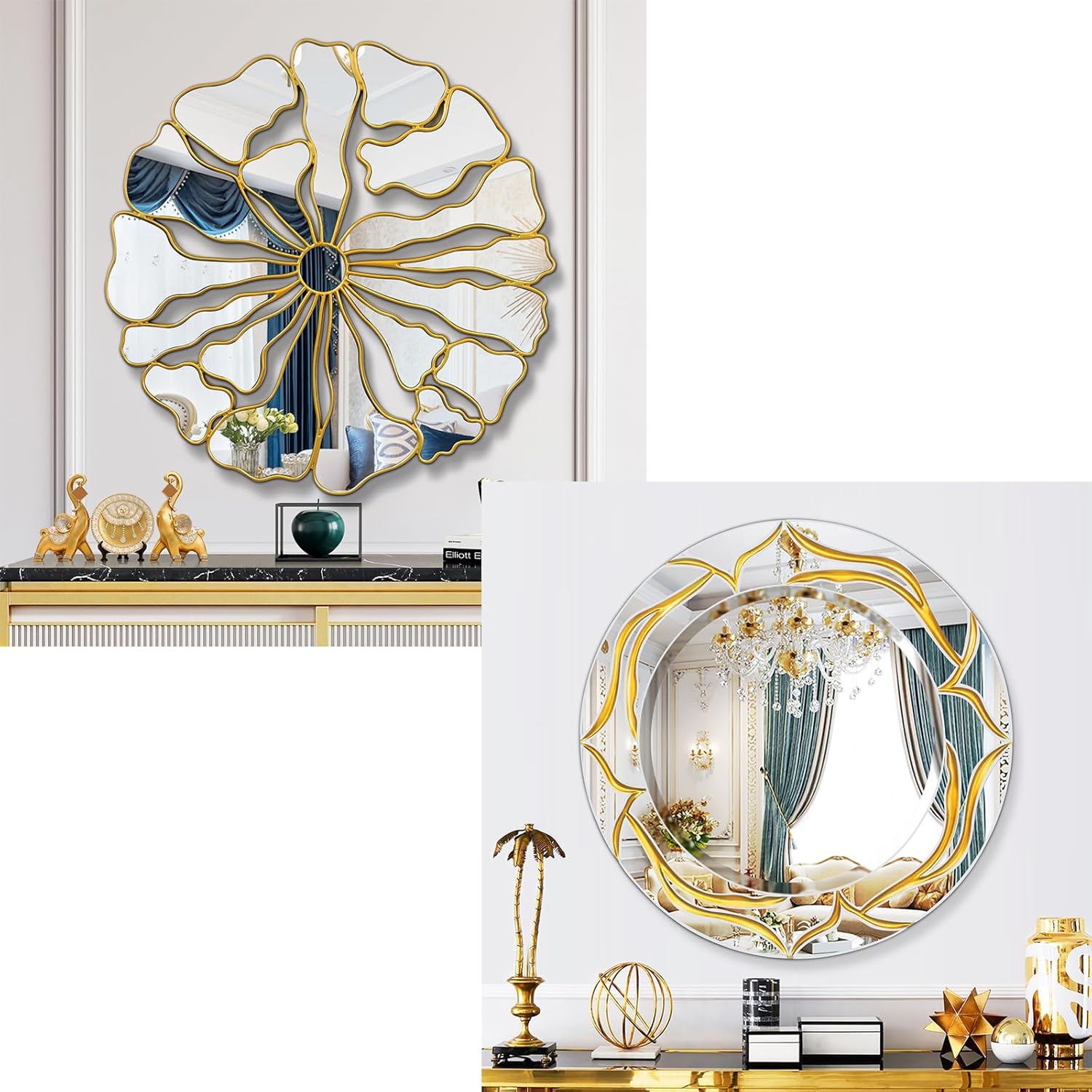 Gold Wall Mirror Round Combining light and dark materials, the round wall mirror will add a touch of industrial style to your décor whether it is placed in the hallway, living. With striking wall mounted designs to floor standing mirrors, find embellished and. Gold round mirror, 24 inch round mirror, gold circle mirror metal frame, round wall mounted mirrors for bathroom, hallway, living room,.. Gold Wall Mirror Round.