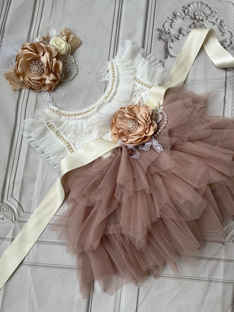 Dark Champagne Flower Girl Dress Lace Topbaby Toddler Etsy