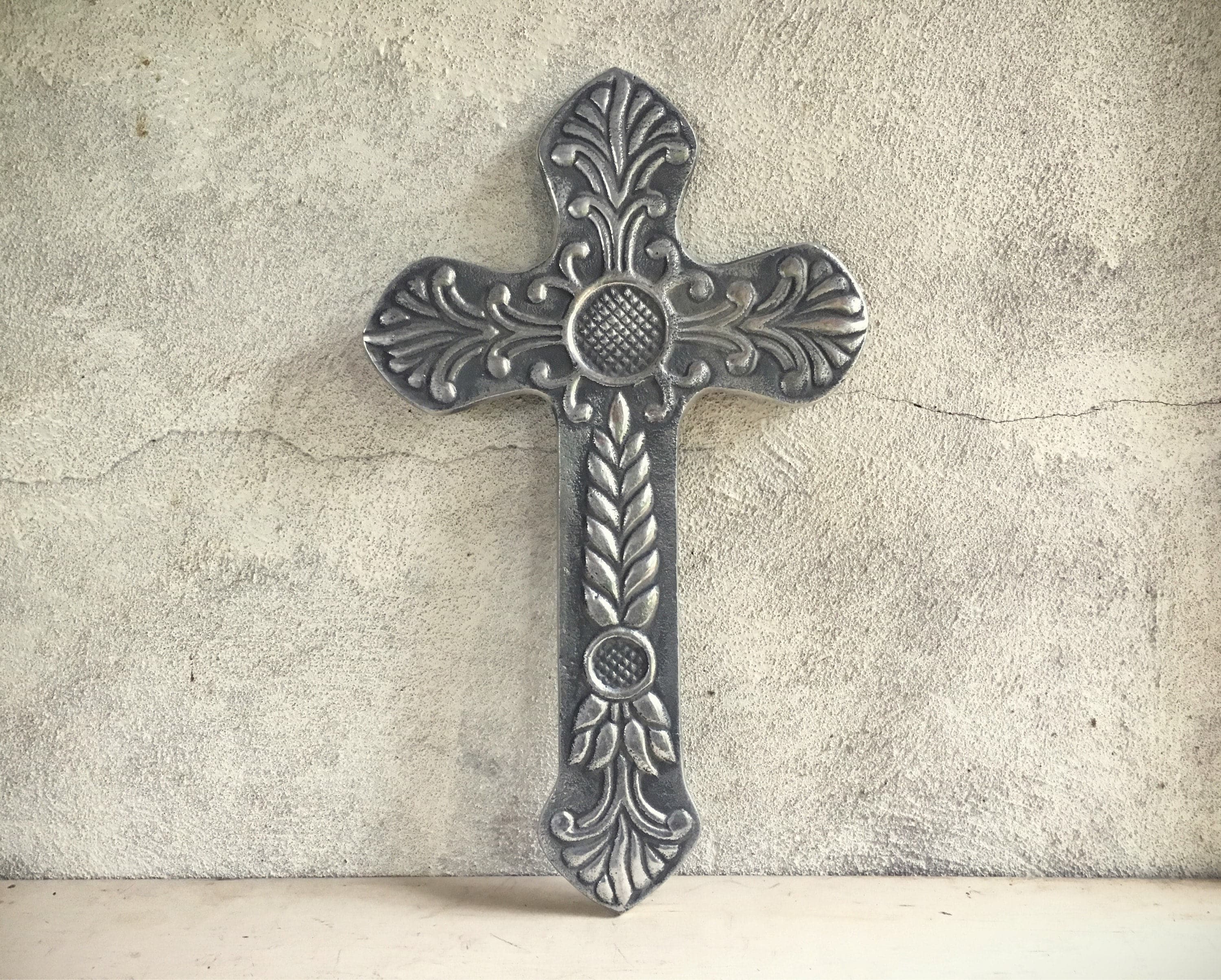 Three vintage wall crosses made of pewter wall hangings Spanish decor