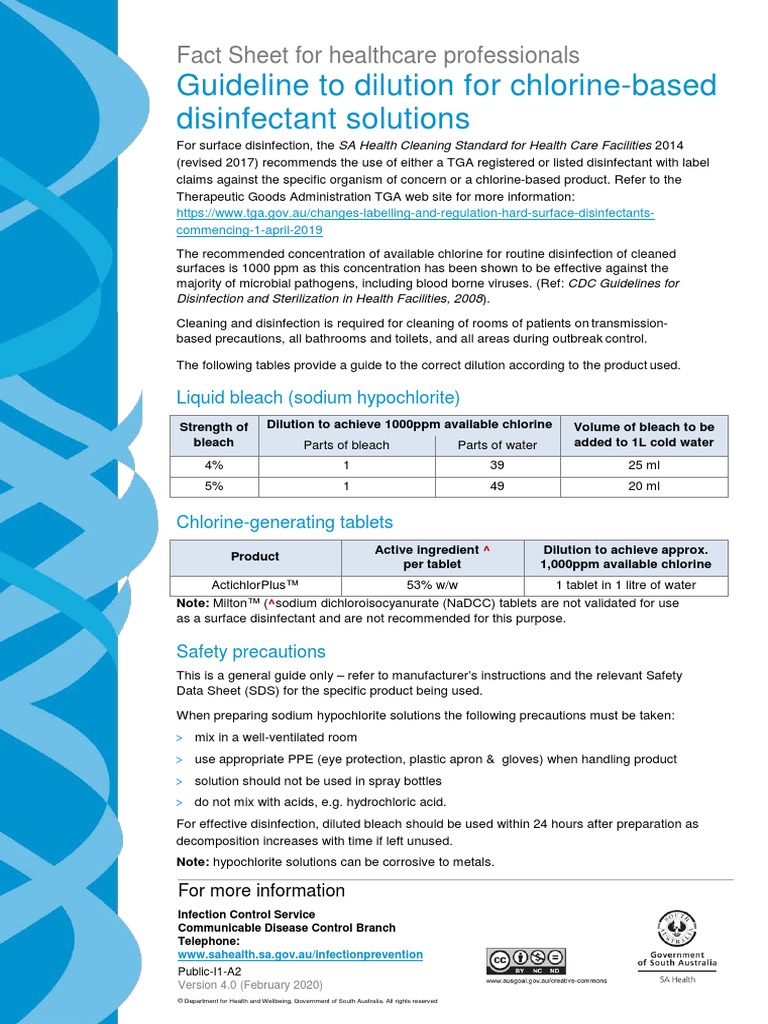 FactSheetSodium+hypochlorite+dilutions v4.0+ (Feb2020) PDF Bleach