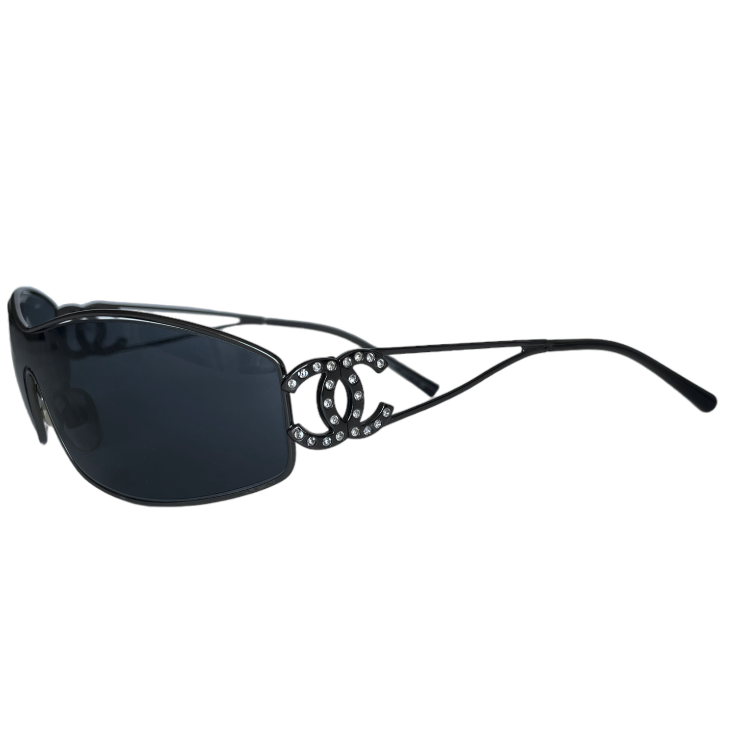 Chanel Diamante Wraparound Sunglasses in Black Nitryl
