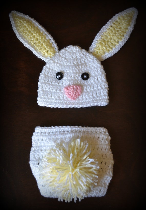 Crochet Easter Bunny Baby Beanie Hat & Diaper Cover Photo Prop