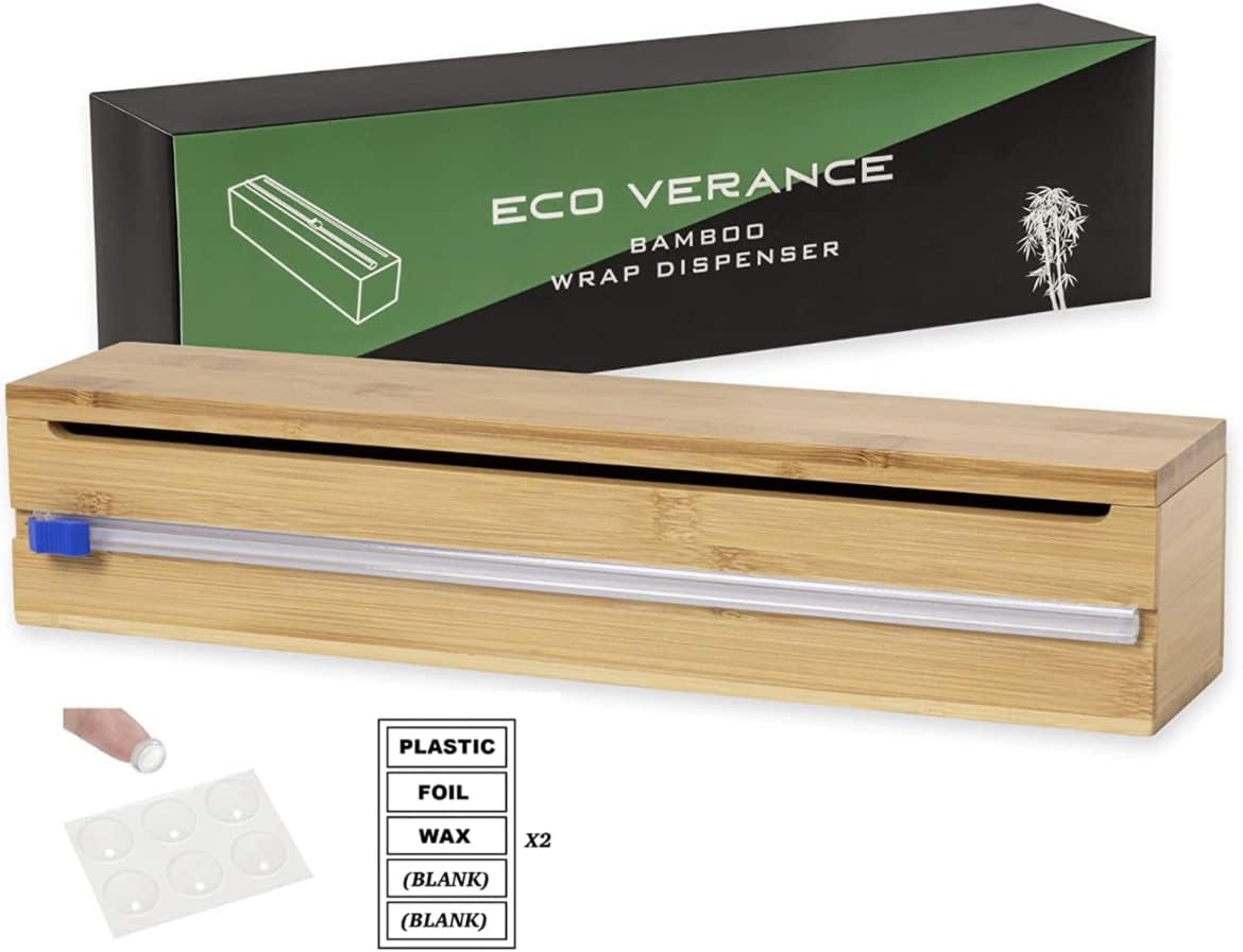 EcoVeranceBamboo Dispenser with Kitchen Plastic Wrap Holder