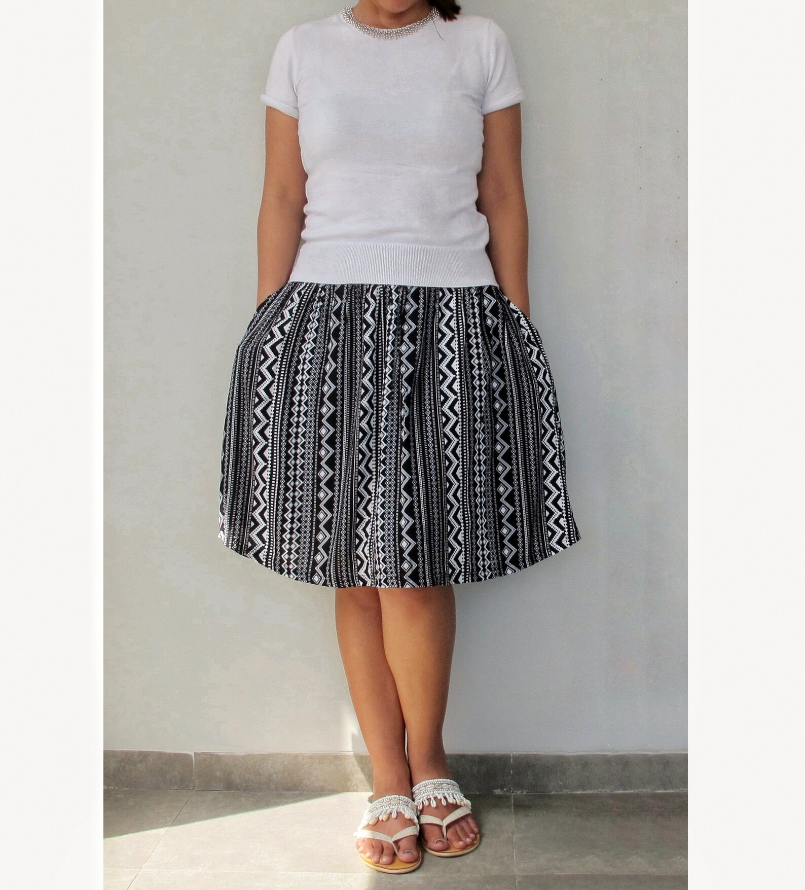 Teal Skirt Black and White Midi Skirt Smart Casual Skirt Etsy