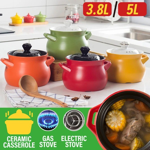 Feeton_homeware [ 3.8L / 5L ] Ceramic Casserole Cooking Pot with Lid