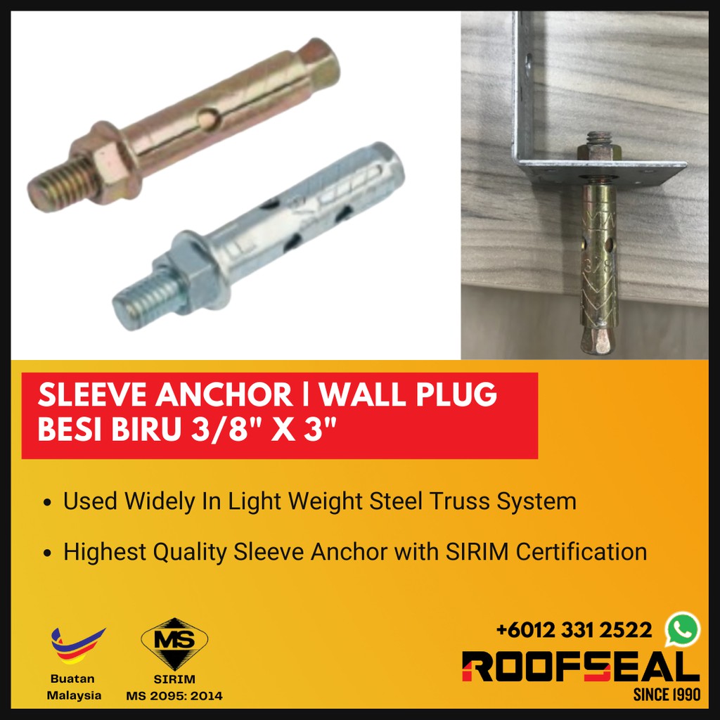 SYW Sleeve Anchor / Wall Plug Besi (1set=10pcs) Shopee Malaysia Sleeve Anchor Wall Plug Size Sleeve anchors are available in stainless steel for outdoor and wet environments. Acorn, hex, round or flat. This page contains pictures, descriptions, and load ratings for the most commonly available wall anchors. This chart will help you identify what type of anchor you need. Here is a list of the most common wall anchors, including several types of drywall anchors.. Sleeve Anchor Wall Plug Size.