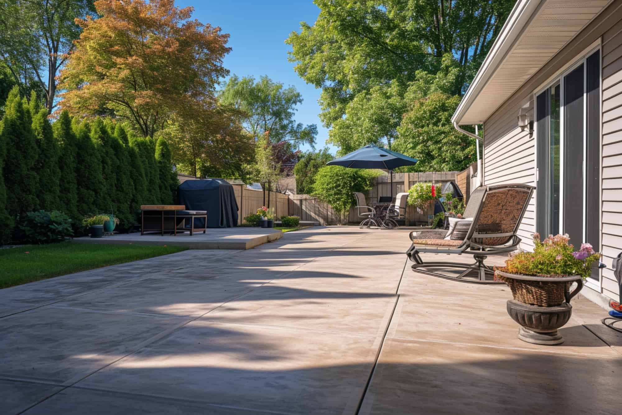 There are tons of concrete patio ideas that will enhance your backyard space and elevate your landscape. Your backyard patio doesn't have to be boring with these concrete patio ideas that range from textured stamped concrete to geometric concrete slabs We've rounded up some of our. With wood, you have to worry about warping or rotting and with stone pavers, you have to worry about filling joints and pavers settling unevenly. This patio shows how beautiful concrete tiles look when mixed with brick. So without further ado, here are 20 design ideas for your concrete patio. Ready to discover lots of stunning concrete patio ideas to get you inspired for your own backyard? Looking to add value to your home?
