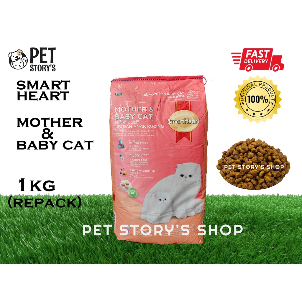 [Repack 1KG] SmartHeart Dry Cat Food Mother & Baby Cat *1KG Shopee