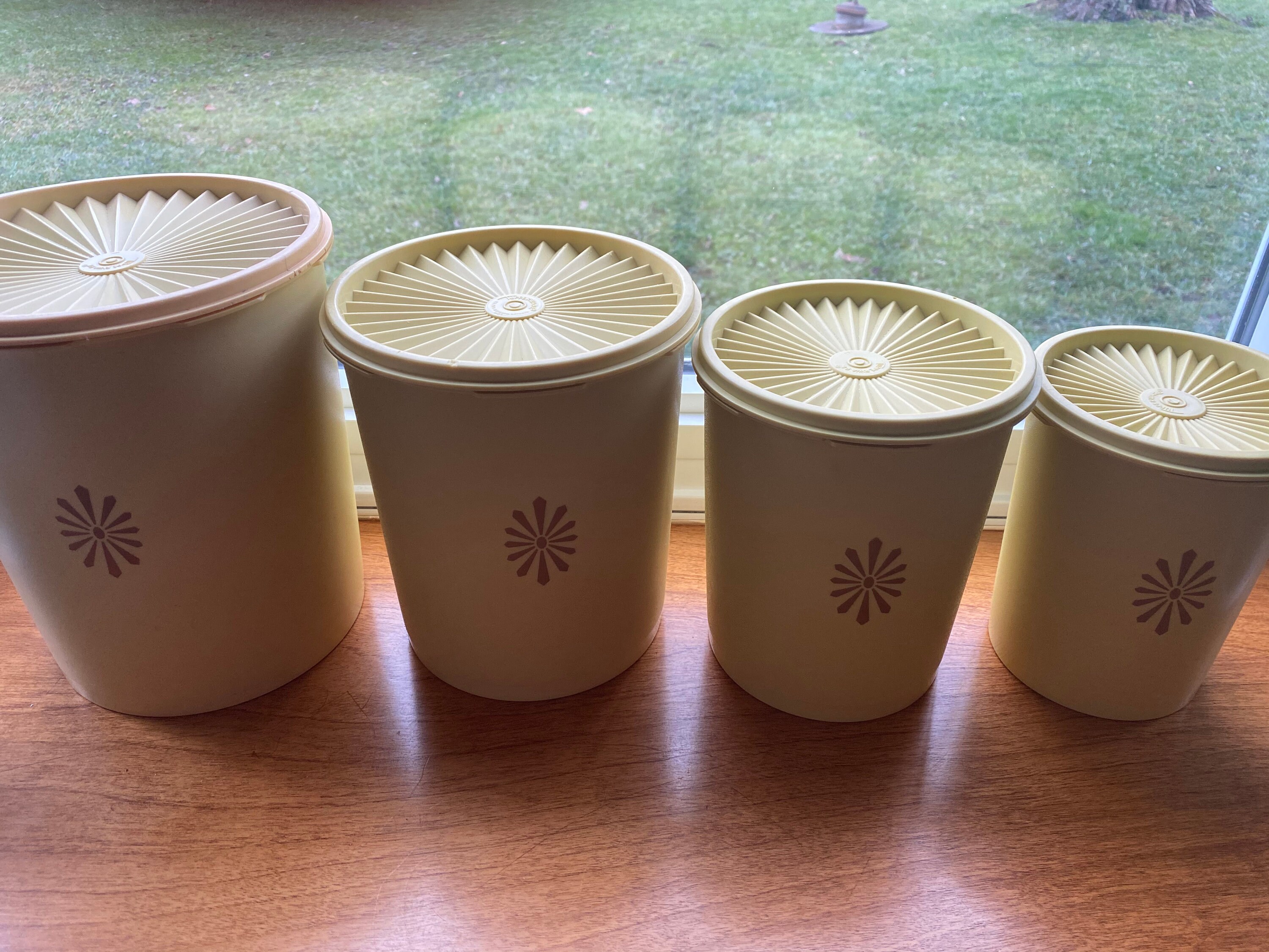 Vintage Tupperware Canisters Cream Tupperware Set of 4 Etsy Canisters Tupperware Set of 5 nesting canisters includes one each 1½. Set of 5 nesting canisters with the classic tupperware sunburst lid design. These one touch® canisters featuring chic coffee cafe artwork keep dry foods and small snacks fresh and easily accessible on the counter or. The tupperware heritage canister set. This stylish set looks equally at. This versatile set combines airtight.. Canisters Tupperware.