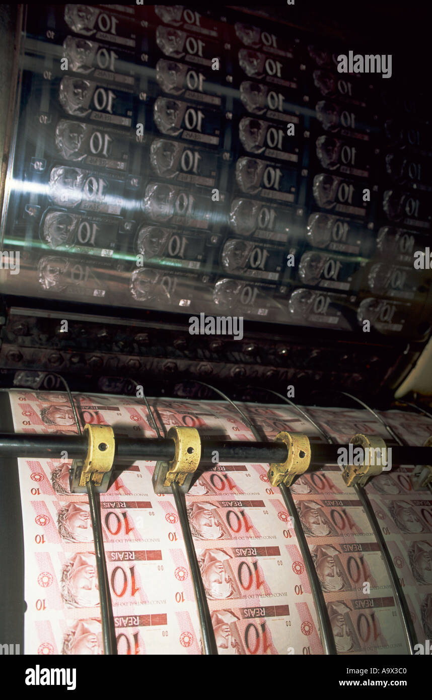 Rio de Janeiro, Brazil. Printing press producing 10 Reais currency