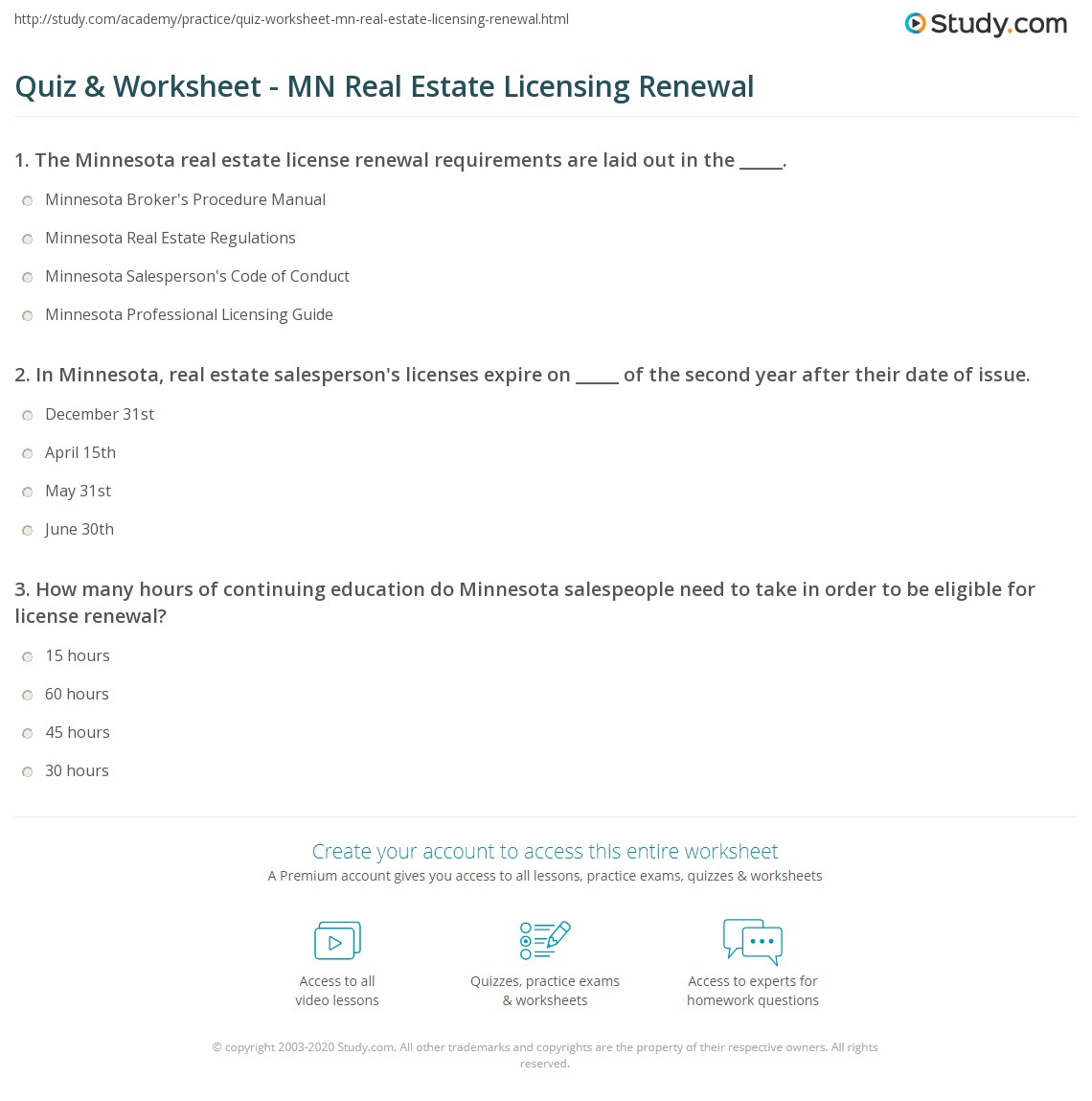 Quiz & Worksheet MN Real Estate Licensing Renewal