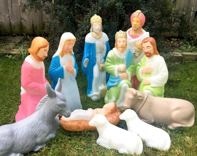 Blow Mold Life Size Christmas Nativity 10pc Set Nativity Blow Mold Set Vintage 3 piece empire nativity blow mold set, blow mold nativity set with lights, nativity set Made in america, this general foam plastic blow mold nativity scene will surely light up your holidays for years to come. Get the best deals for nativity blow mold set at ebay.com. Christmas nativity set blow mold jeaniesrosepatch6 4.5 out of 5 stars arrives. Nativity Blow Mold Set.