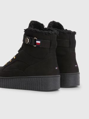 Leather Warm Lined LaceUp Boots BLACK Tommy Hilfiger