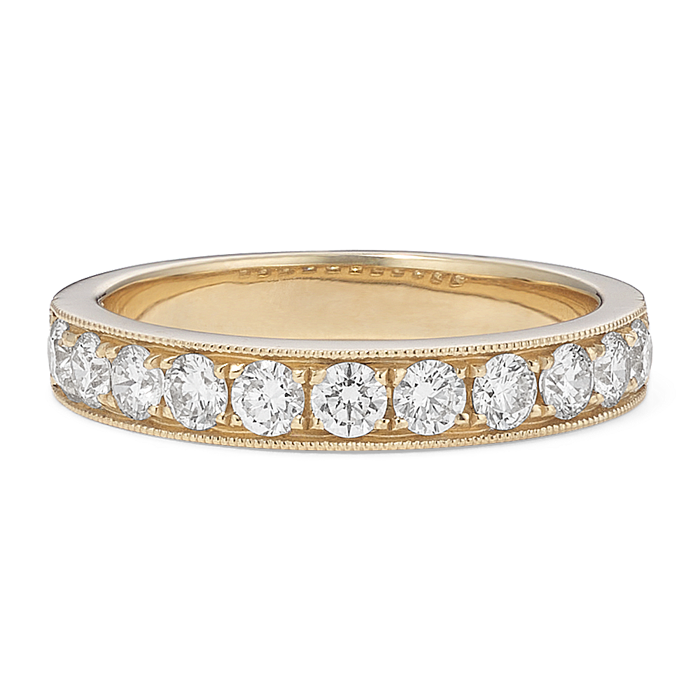 Diamond Wedding Band in 14k Yellow Gold with Milgrain Detailing Shane Co.