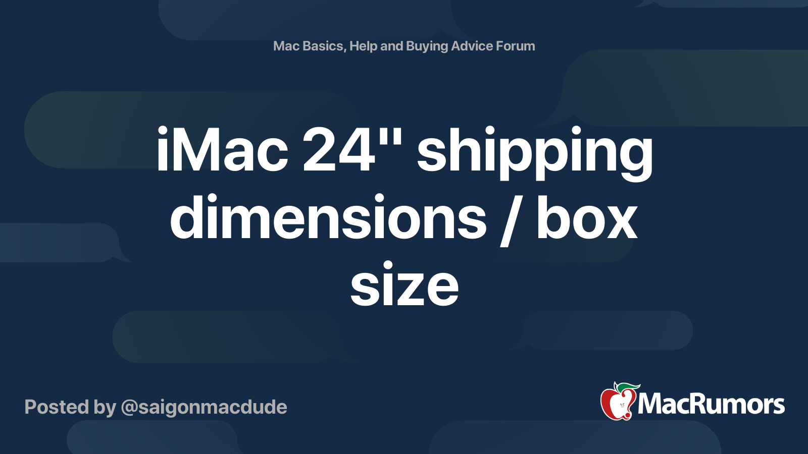 iMac 24" shipping dimensions / box size MacRumors Forums