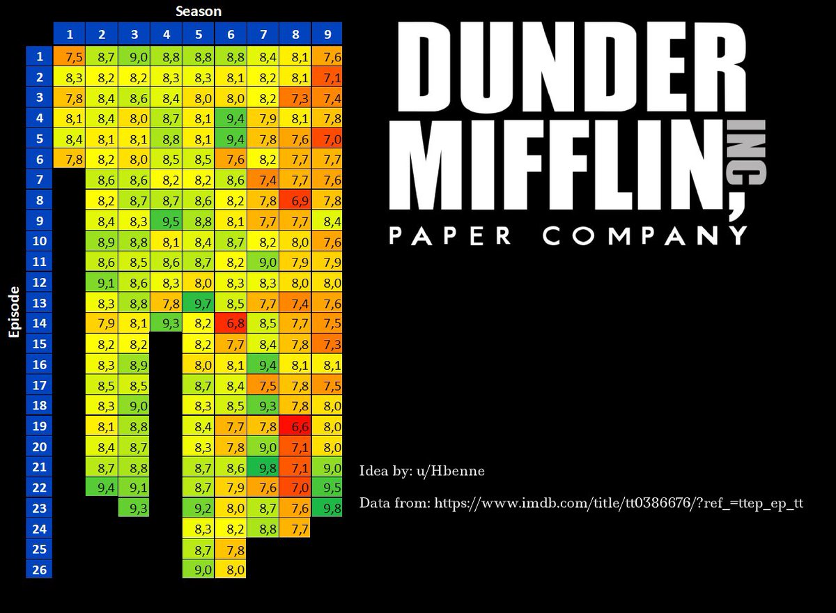 The office IMDb ratings by episode r/coolguides Highest Rated The Office Episodes Imdb By anthony orlando december 20, 2022. A mockumentary on a group of typical office workers, where the workday consists of ego clashes, inappropriate behavior, and. with so much sustained interest and passionate fandom surrounding the show, it's never a bad time to look back at the absolute best. Being one of the most beloved and acclaimed. our list. Highest Rated The Office Episodes Imdb.