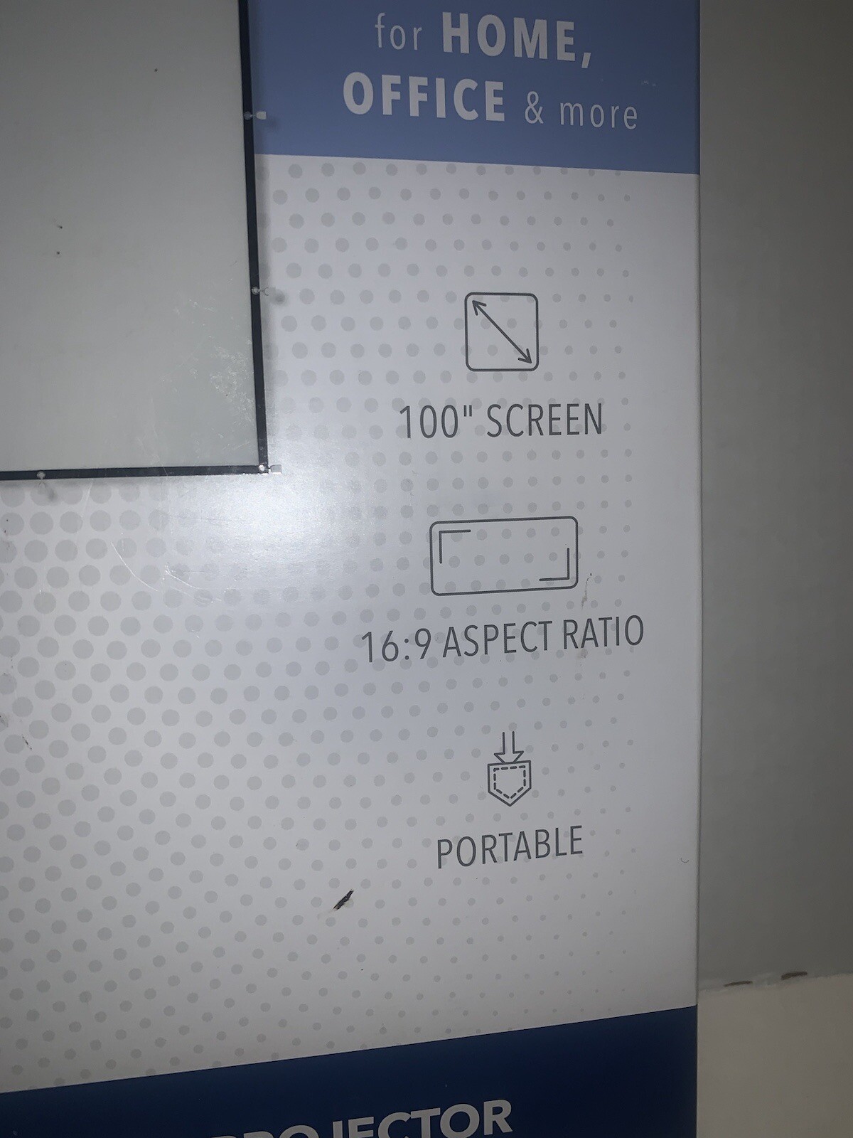 Insignia 100" Home Theater Projection Screen Insignia 100 Home Theater Wall Projection Screen This insignia 100 home theater fixed wall projector screen offers a cinema experience in the comfort of your home. With a size of 54 × 92 in. 600603266645 product weight 17.4 pounds maximum screen size (diagonal) 100 inches aspect ratio 16:9 operation fixed frame. This is just the screen, it is for parts only. Never been used still in original. Insignia 100 Home Theater Wall Projection Screen.
