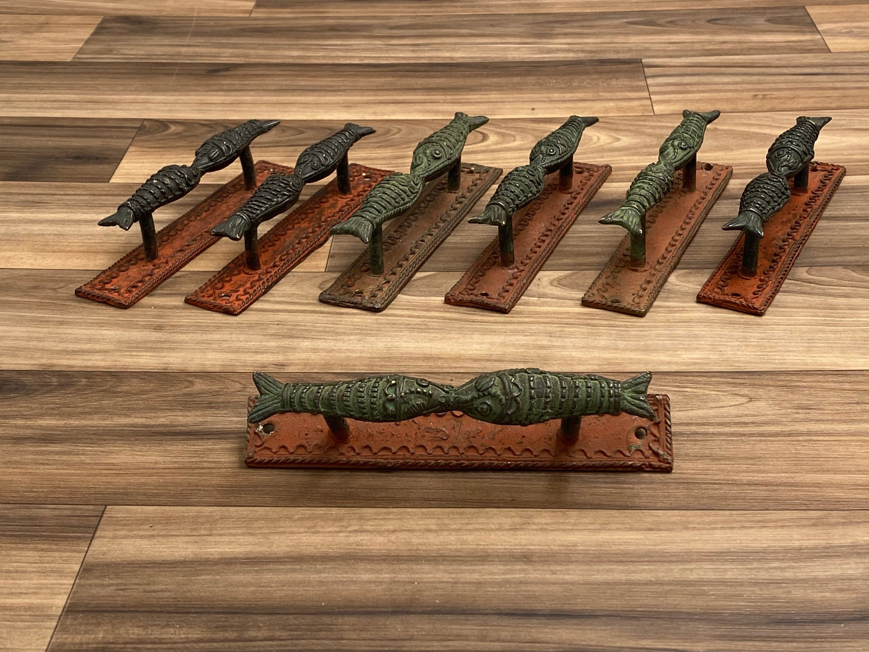 Rustic Fish Drawer pulls, verdigris Nautical Cupboard door handles, Reclaimed Hardware, Fish