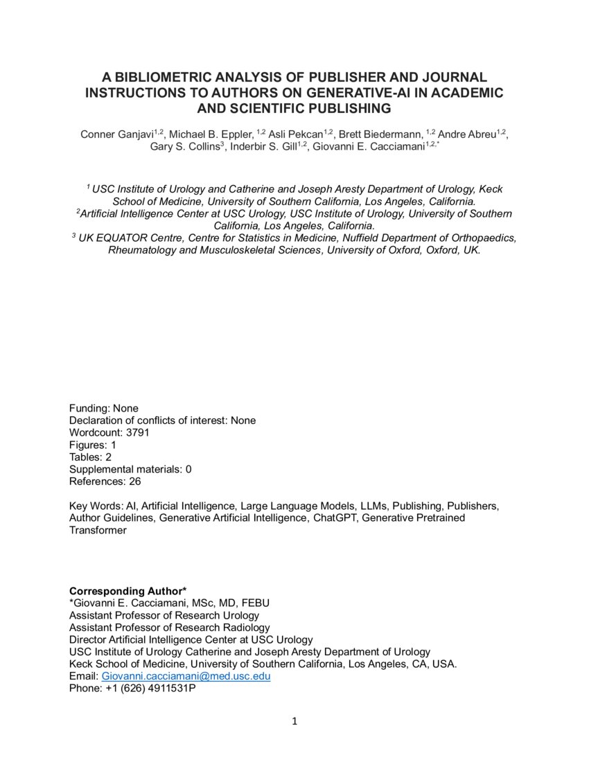 Bibliometric Analysis of Publisher and Journal Instructions to Authors