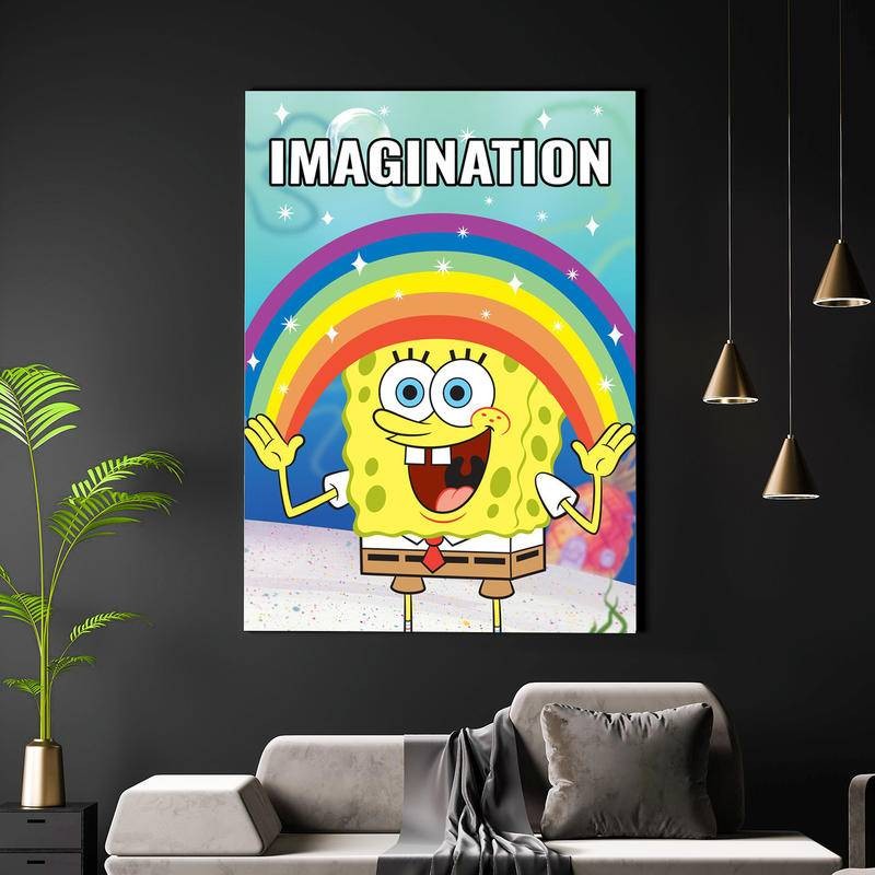Fun Spongebob Imagination Meme No Framed Art Home Wall Decor Canvas