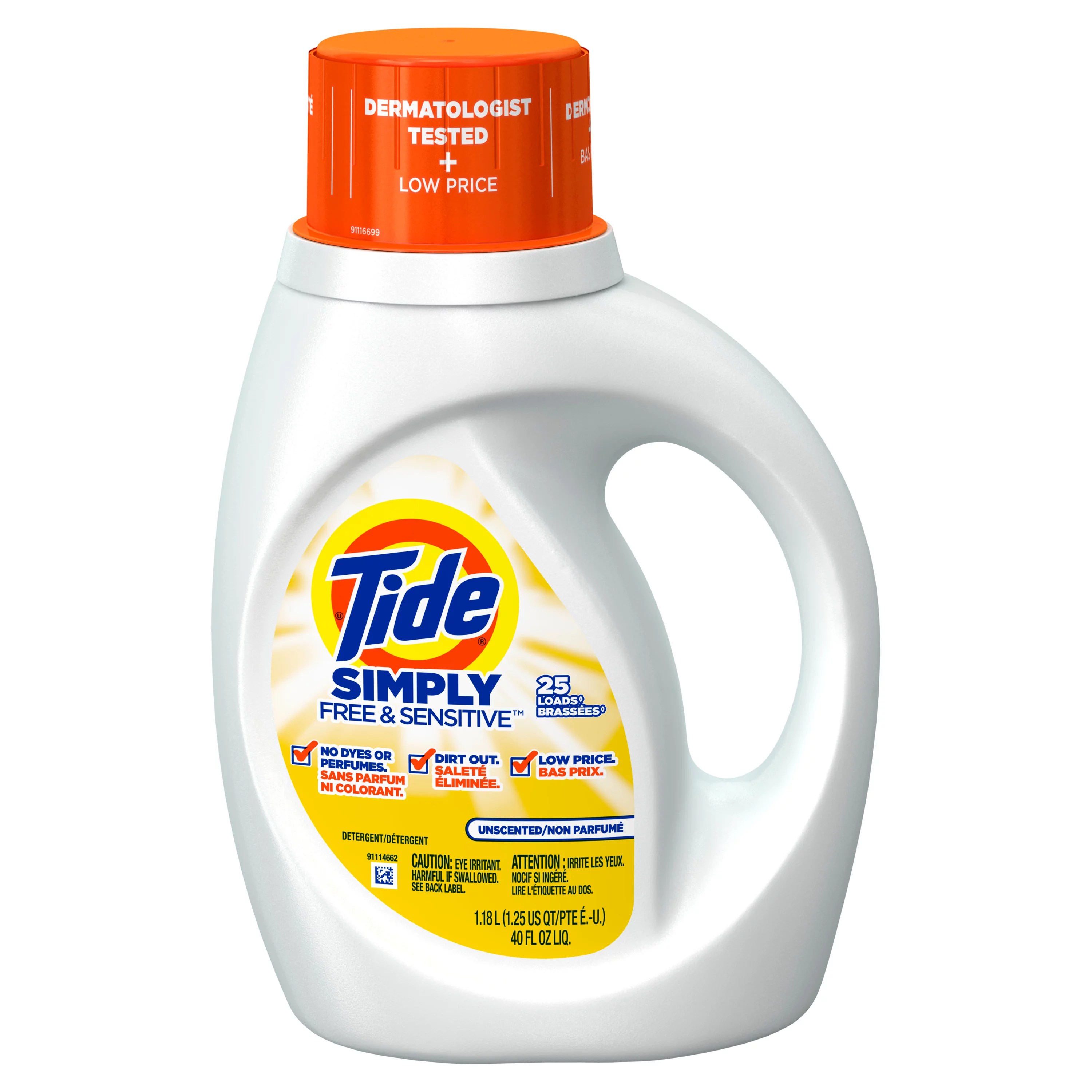 Tide Simply Free & Sensitive HE Liquid Laundry Detergent, 25 Loads