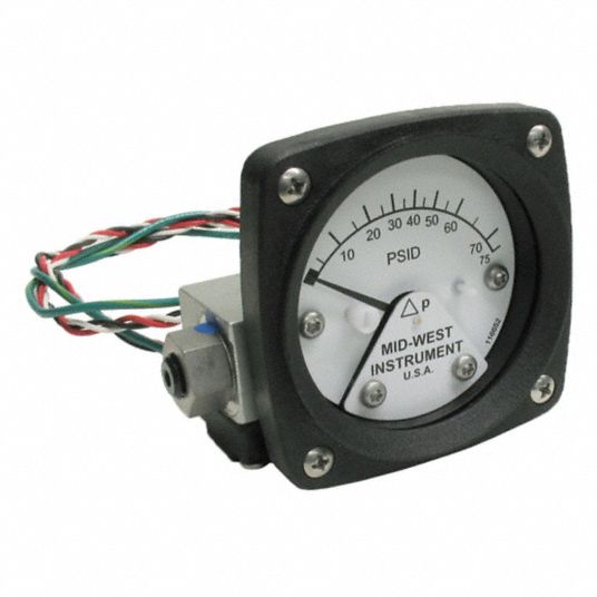 MIDWEST INSTRUMENT, 0 to 110 psid, Back, Differential Pressure Gauge Differential Pressure Gauge With Switch find various types of differential pressure gauges and switches with switch outputs and dial indicators. switch contacts (electrical alarm contacts) make or break an electric control circuit dependent upon the pointer position of the pressure gauge. high working pressure (static pressure) and high overload safety, selectable up to 40, 100, 250 or 400 bar. High working pressure. Differential Pressure Gauge With Switch.