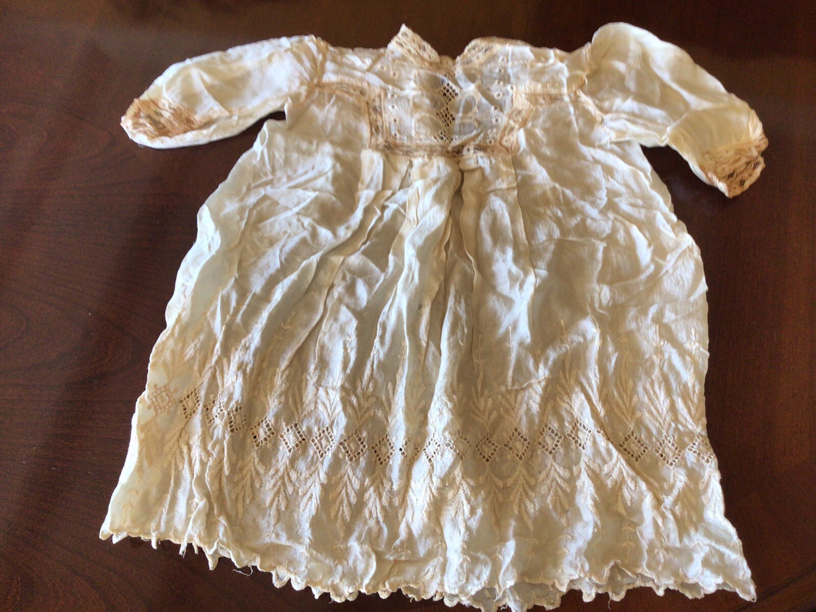 Antique Silk Christening Gown Baptism Robe Silk Doll Dress How To Clean Antique Silk Christening Gown By following these steps, you can restore your christening gown to its former glory, ensuring it remains a treasured family heirloom for generations to come. This is because most gowns are made of difficult to wash materials such as silk, which will be ruined if exposed to water. Any body oils, stains, dirt, dust, or detergents. Repairs or replacement of. How To Clean Antique Silk Christening Gown.