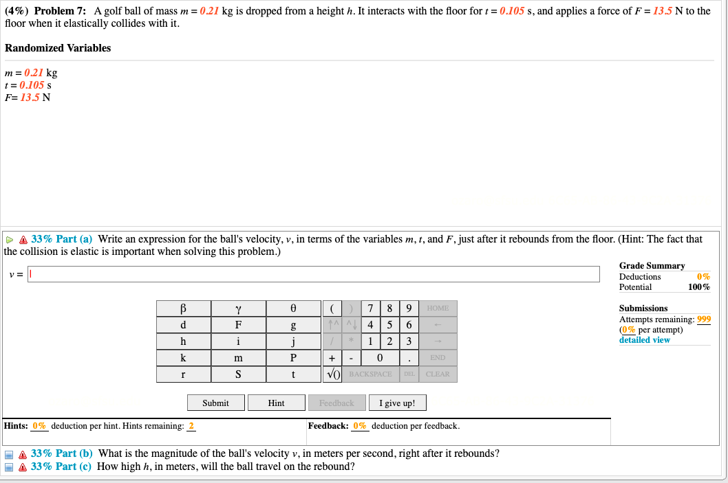 Solved (4) Problem 7 A golf ball of mass m=0.21 kg is