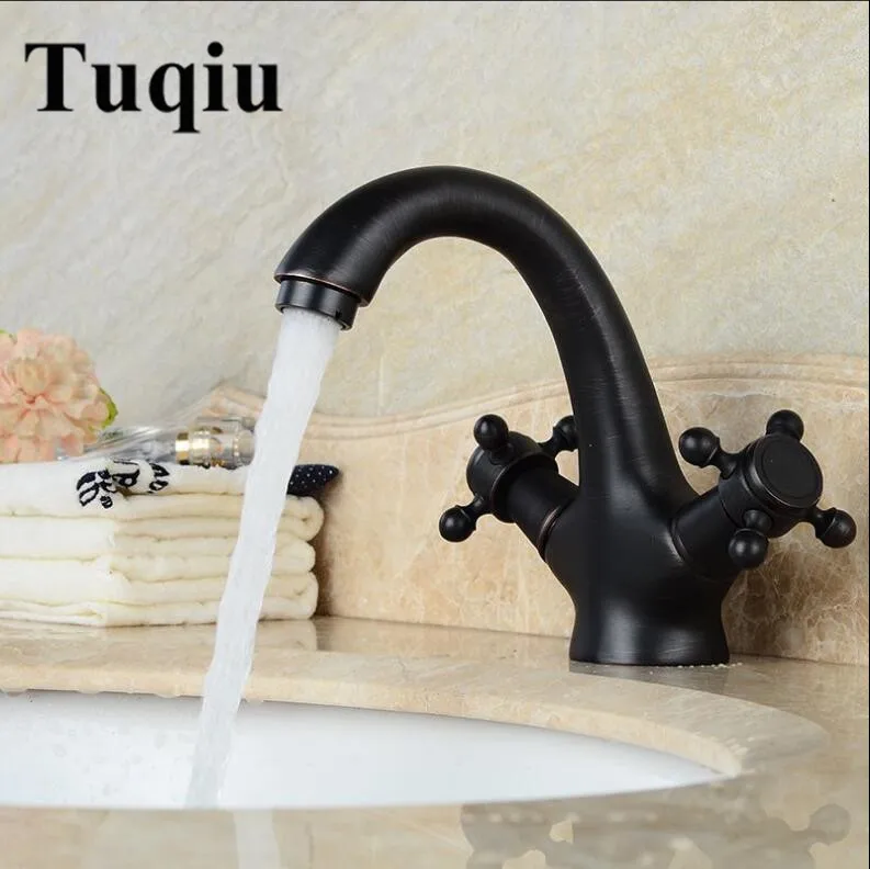 Basin Faucets Black Antique Brass Double Cross Handle Bathroom Sink Faucet Bath basin Vanity