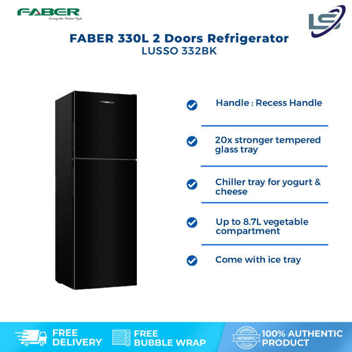 FABER 330L 2 Doors Refrigerator LUSSO 332BK [UNK] 20x Stronger Tempered Glass Tray [UNK