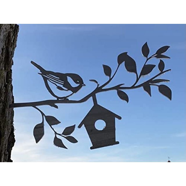 Sparrow and Birdhouse on a Branch Metal Art Made in USA