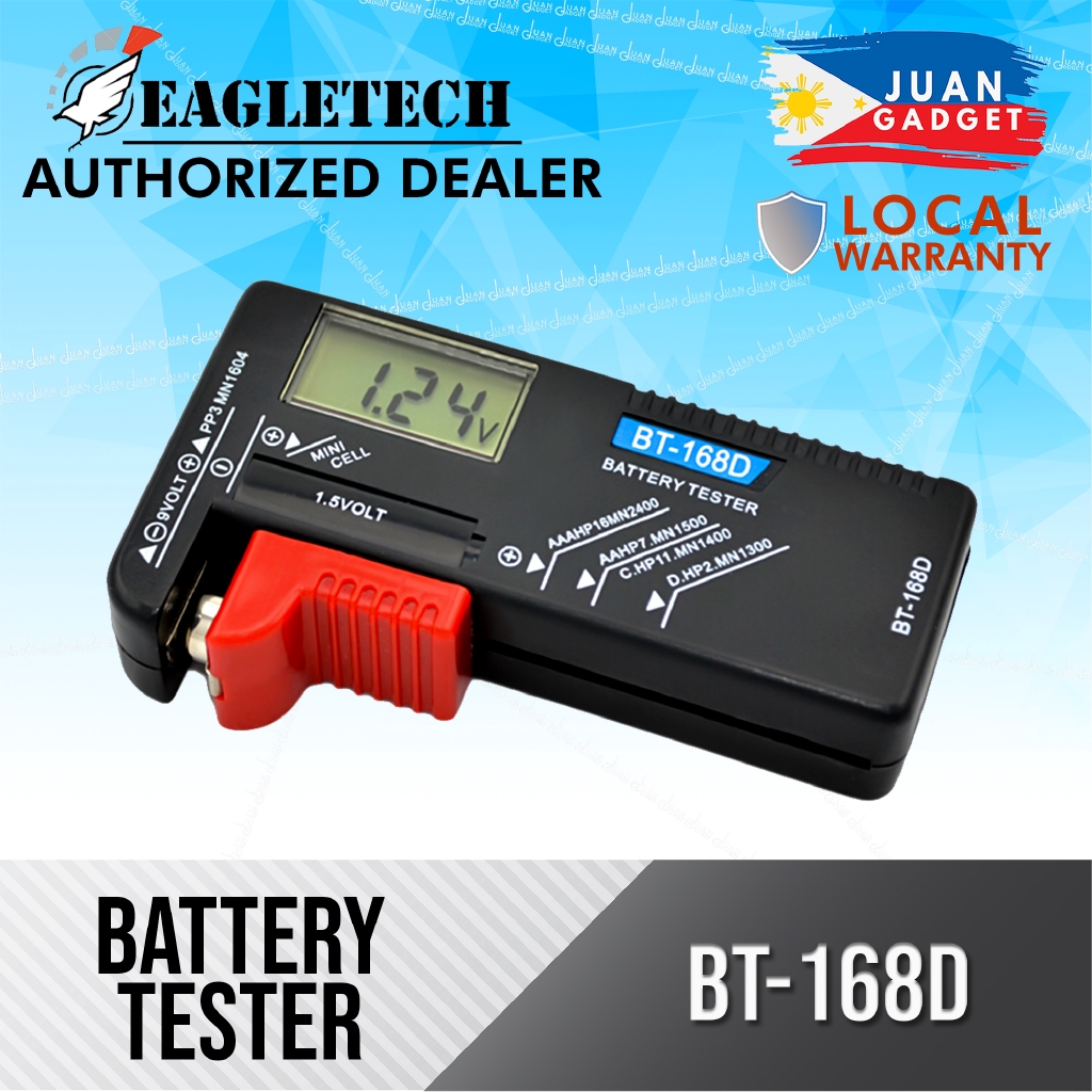 Eagletech BT168d AA/AAA/C/D/9V/1.5V LCD Digital Button Cell Battery Battery Tester Bt-168D If lcd does not display, check that battery is touching both contacts before assuming that it. A must buy for anyone who uses regular or rechargeable batteries on a regular basis. This button cell battery volt tester has an lcd display for easy viewing of digital identification battery power levels. More details on the bt168 and bt168d battery testers. Tests. Battery Tester Bt-168D.