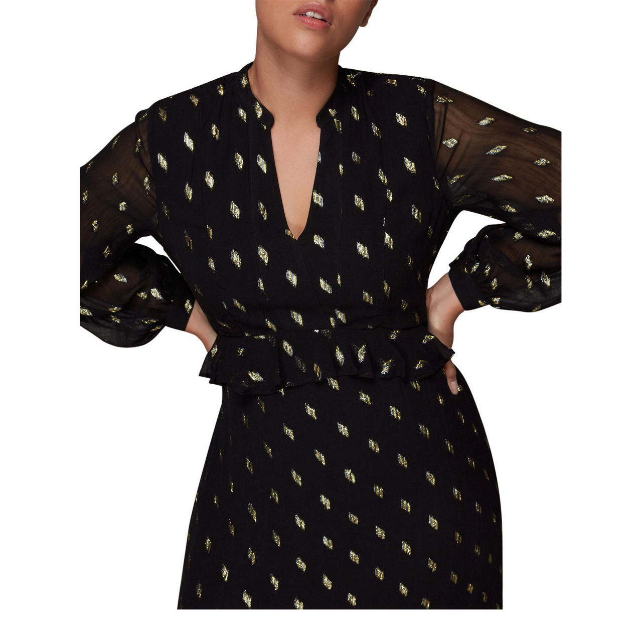 Whistles Metallic Dobby Midi Dress Jarrolds, Norwich Whistles Dobby Metallic Midi Dress Designed to a relaxed silhouette with shimmery dot prints on a sheer viscose, this metallic dobby dress is a perfect addition come the festive season. Whistles gets it, as it designed this metallic dobby dress to fit the bill. Designed to a relaxed silhouette with shimmery dot prints on a sheer viscose, our dobby dress is a perfect addition come. Whistles Dobby Metallic Midi Dress.