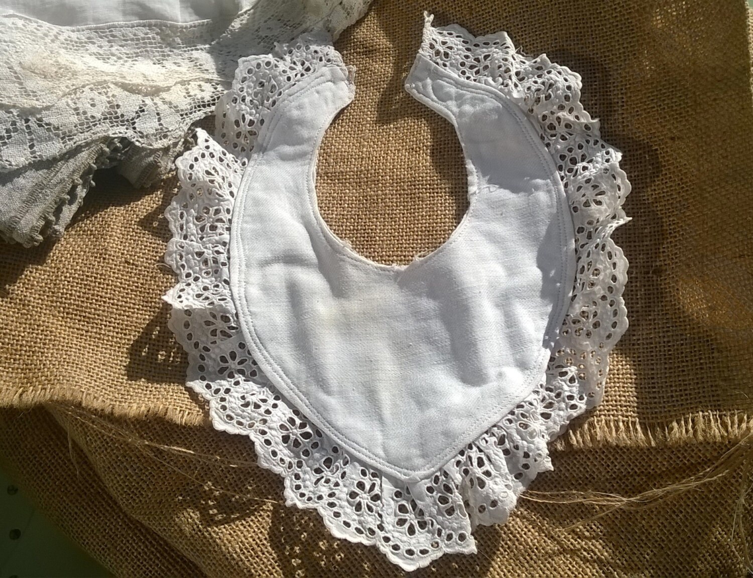 White Cotton Victorian Baby Bib Collar Eyelet Lace Trim French
