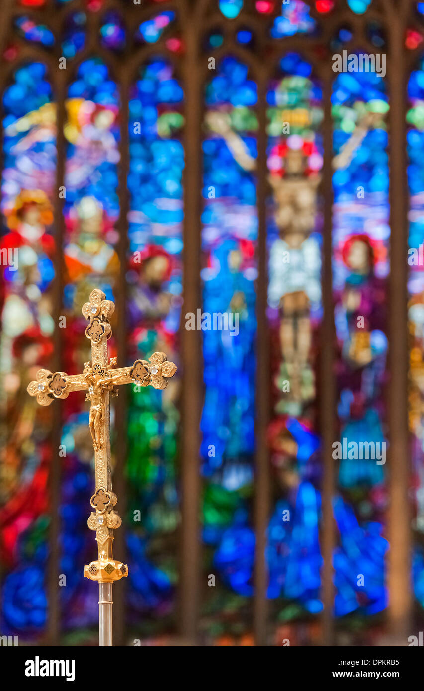 Crucifix in front of a stained glass window Stock Photo Alamy