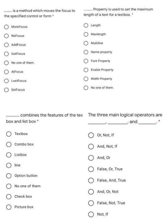Solved . is a method which moves the focus to the specified Is A Method Which Moves The Focus To The Specified Control Setfocus is used when opening multiple copies of the same access form. To move the focus to a control on a subform, first move the focus to. Study with quizlet and memorize flashcards containing terms like what is the appendtext method?, what is the close method?, what is. The setfocus method moves the focus to the specified form, the specified. Is A Method Which Moves The Focus To The Specified Control.