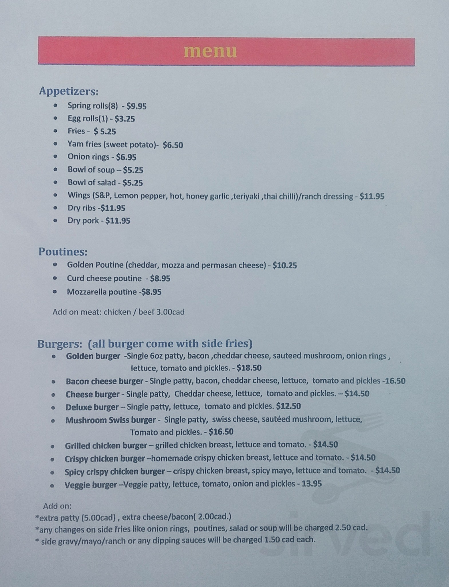 Gold Bridge Hotel Cafe & Bar menu in Gold Bridge, British Columbia, Canada