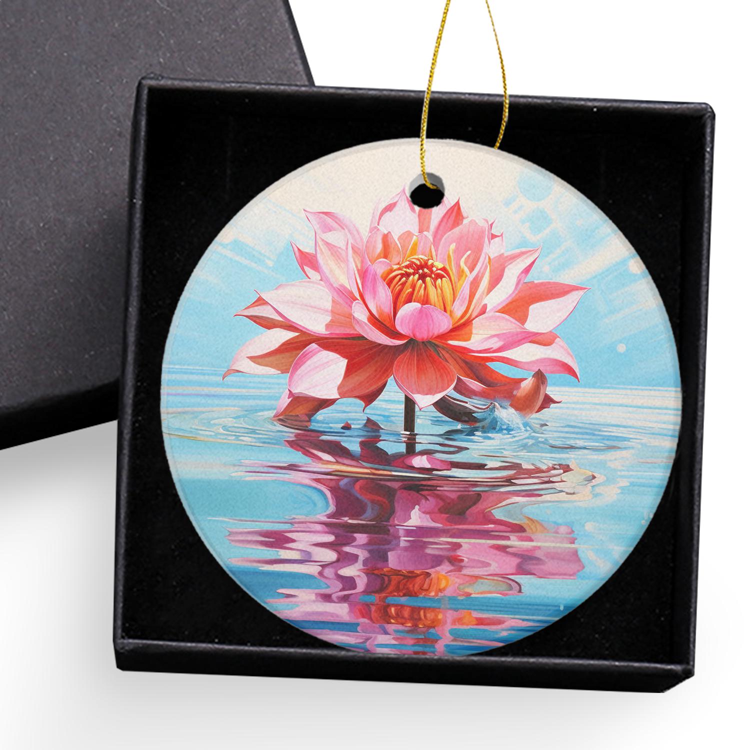 Ceramic Christmas Ornament Circle Pedent,Vintage Floral Oil Painting