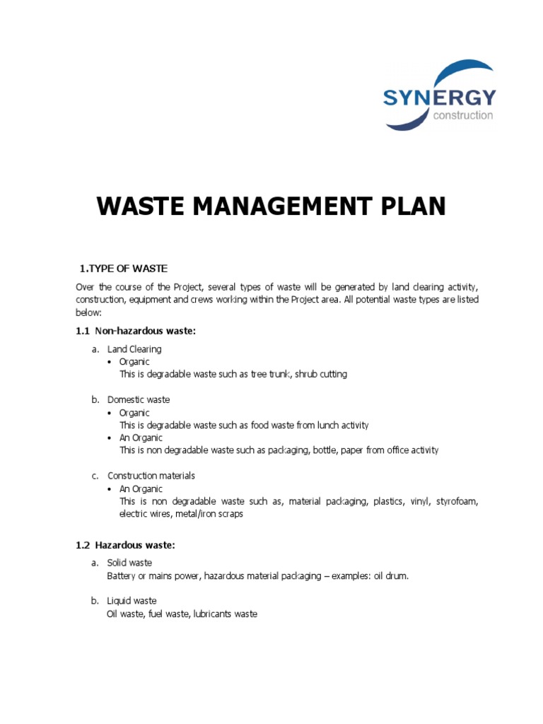 Wast Management Plan PDF Waste Management Municipal Solid Waste