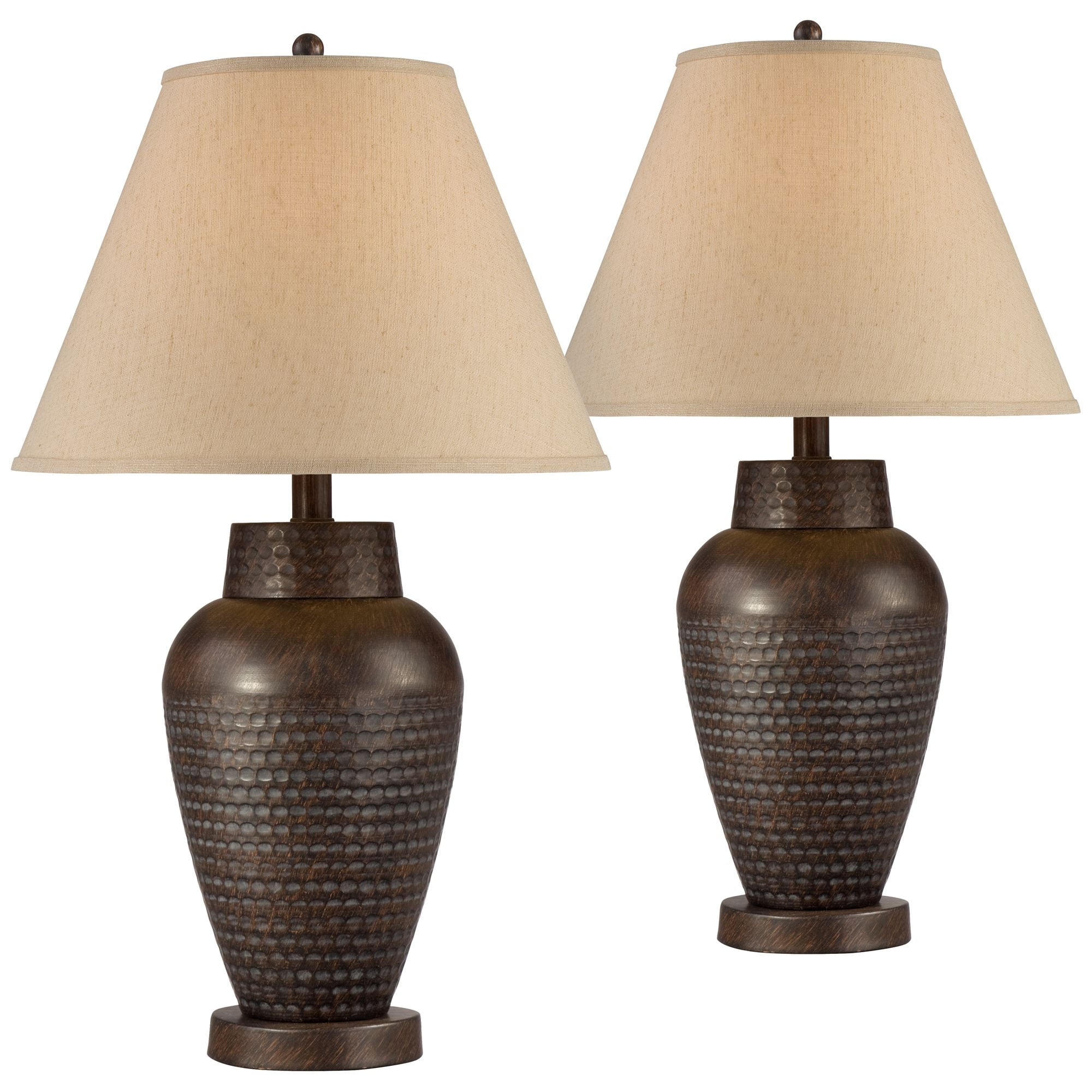 Barnes and Ivy Rustic Table Lamps Set of 2 Hammered Bronze Metal Pot