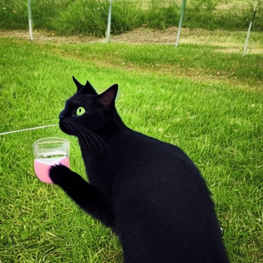 Lexica Photo of a black cat drinking water