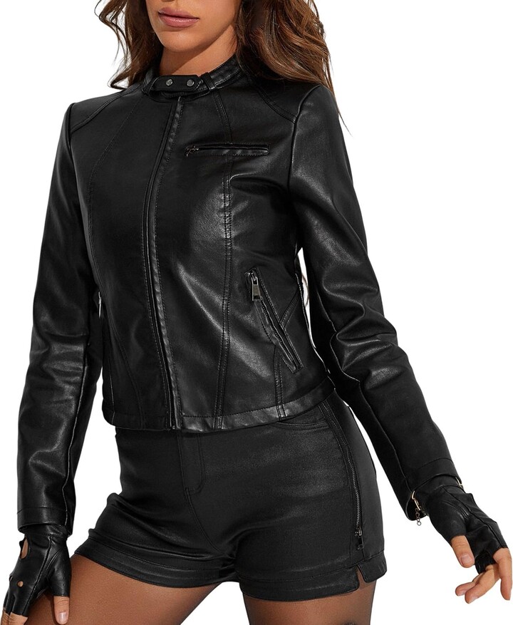 MODSGUE Leather Jacket Women's Black Classic Leather Jacket Moto Biker