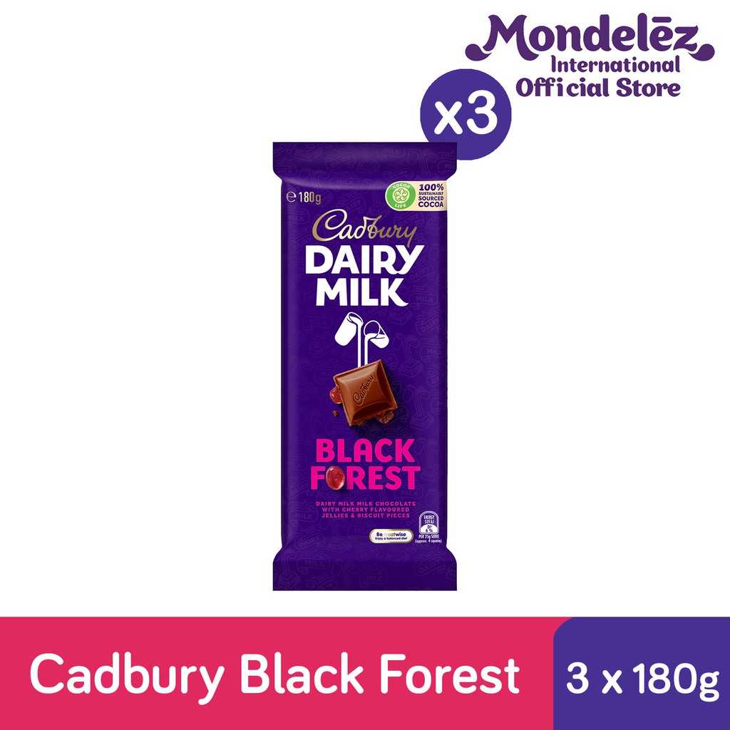 [Bundle of 3] Cadbury Dairy Milk Black Forest Chocolate Bar (180g Dairy Milk Black Forest Bar Made from 100% sustainably sourced cocoa. cadbury dairy milk black forest bar contains cherry flavoured jellies and biscuit pieces. achetez cadbury dairy milk black forest chocolate bar (220g) : free delivery and returns on all eligible orders. Shop cadbury dairy milk black. Made with cadbury's signature milk chocolate recipe. Features a rich black forest ganache filling. . Dairy Milk Black Forest Bar.