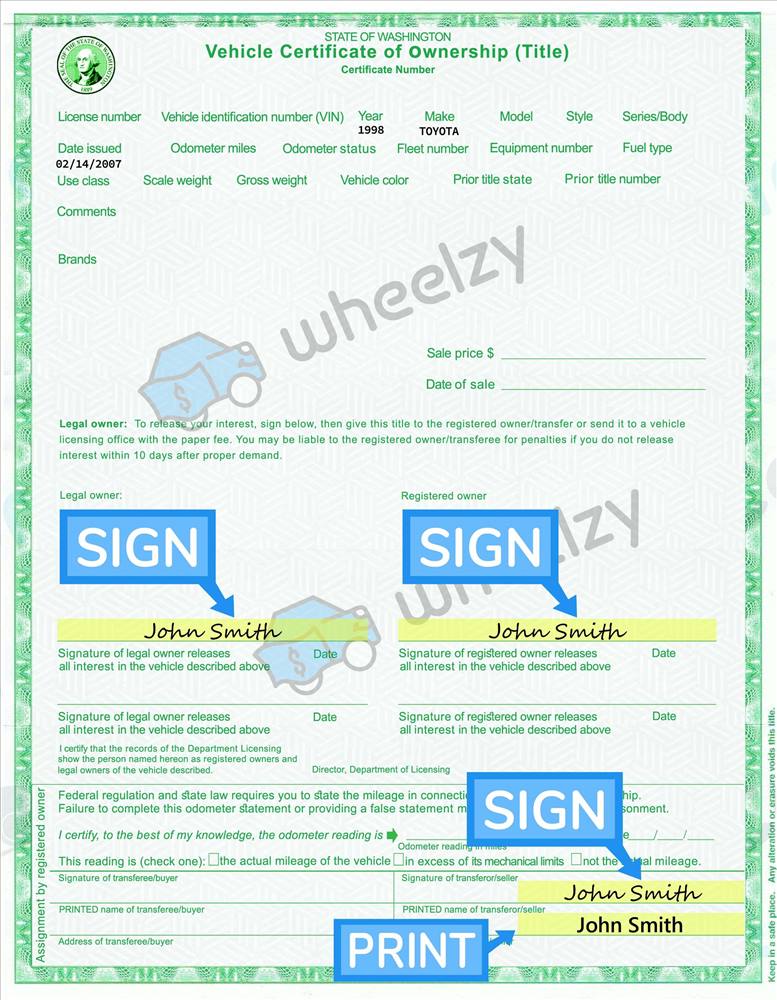 How to Sign Your Car Title in Washington. Including DMV Title Sample